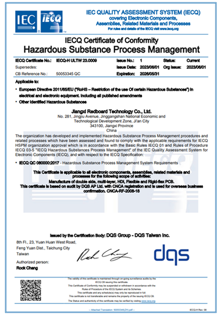 江西紅板科技股份有限公司于2020年正式獲得QC080000體系證書,將持續(xù)滿足相關(guān)方及相關(guān)法律法規(guī)的要求,并持續(xù)推動(dòng)管理體系在組織內(nèi)的運(yùn)用。